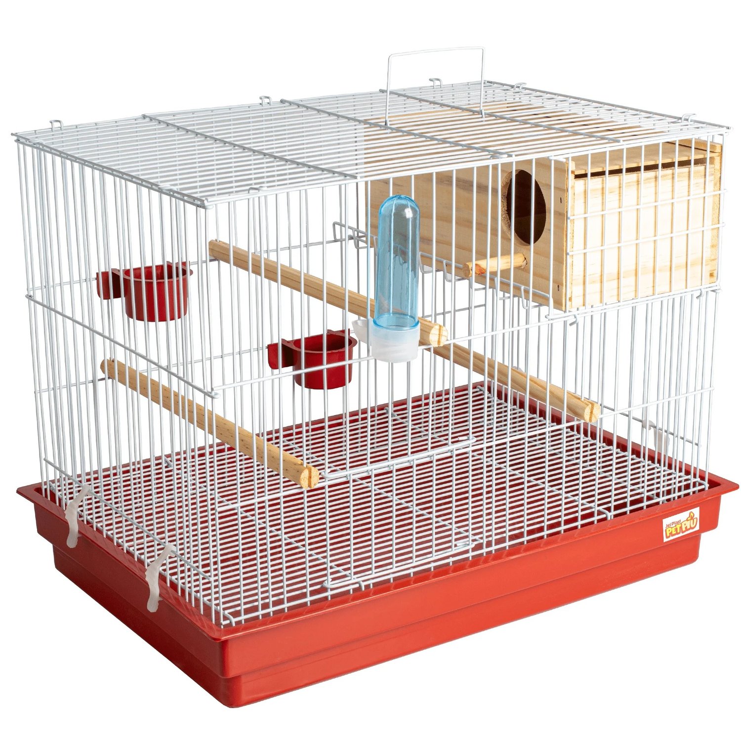 CRIADEIRA PARA CALOPSITA BRANCA COM ACESSÓRIOS VERMELHOS