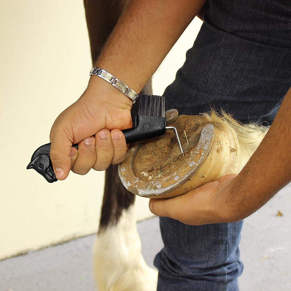 LIMPADOR DE CASCO E RANILHA COM CABEÇA DE CAVALO PRETO COM ESCOVA - KAUANA
