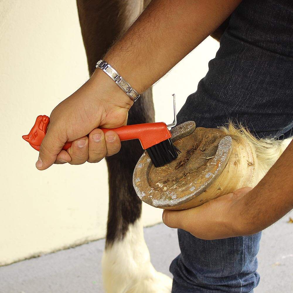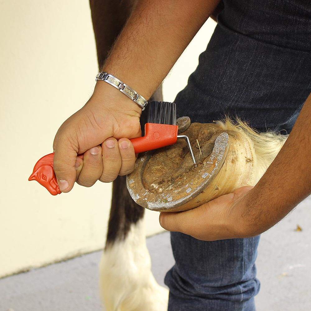 LIMPADOR DE CASCO E RANILHA COM CABEÇA DE CAVALO VERMELHO COM ESCOVA - KAUANA