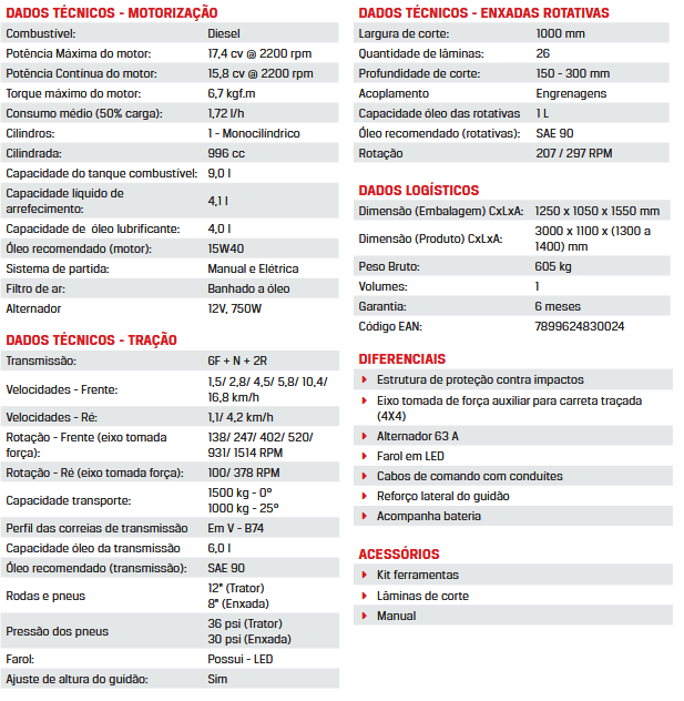 MICROTRATOR BTD-18.0 À DIESEL COM ENXADAS - BRANCO