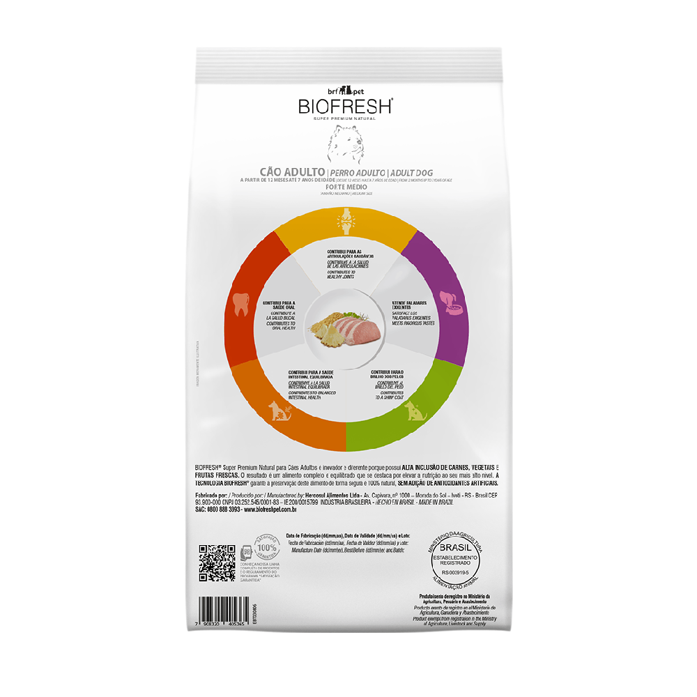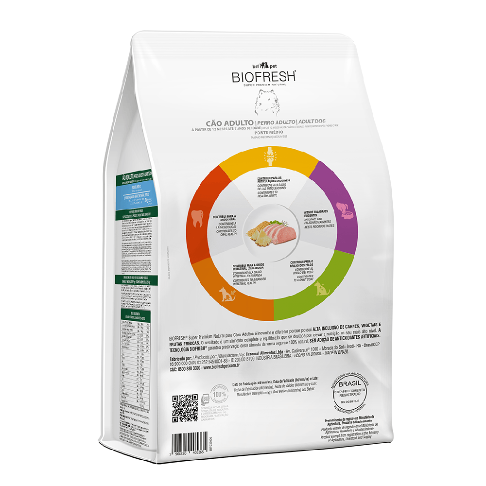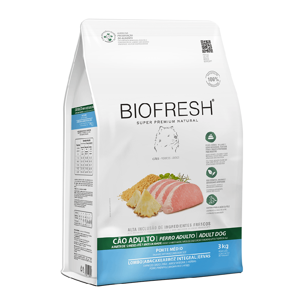 RAÇÃO BIOFRESH CÃES ADULTOS RAÇAS MÉDIAS SABOR LOMBO, ABACAXI, ARROZ INTEGRAL E ERVAS 3KG
