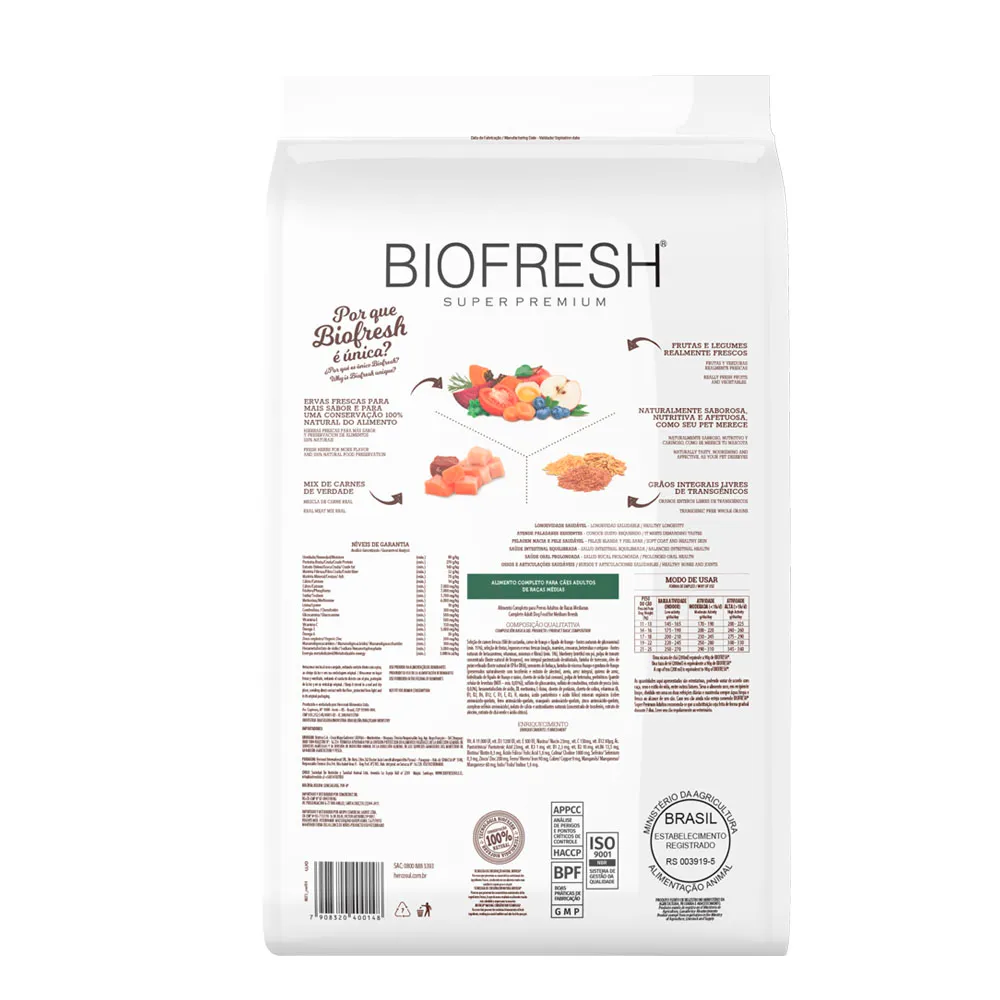 RAÇÃO BIOFRESH SUPER PREMIUM CÃES ADULTOS RAÇAS GRANDES E GIGANTES 15KG