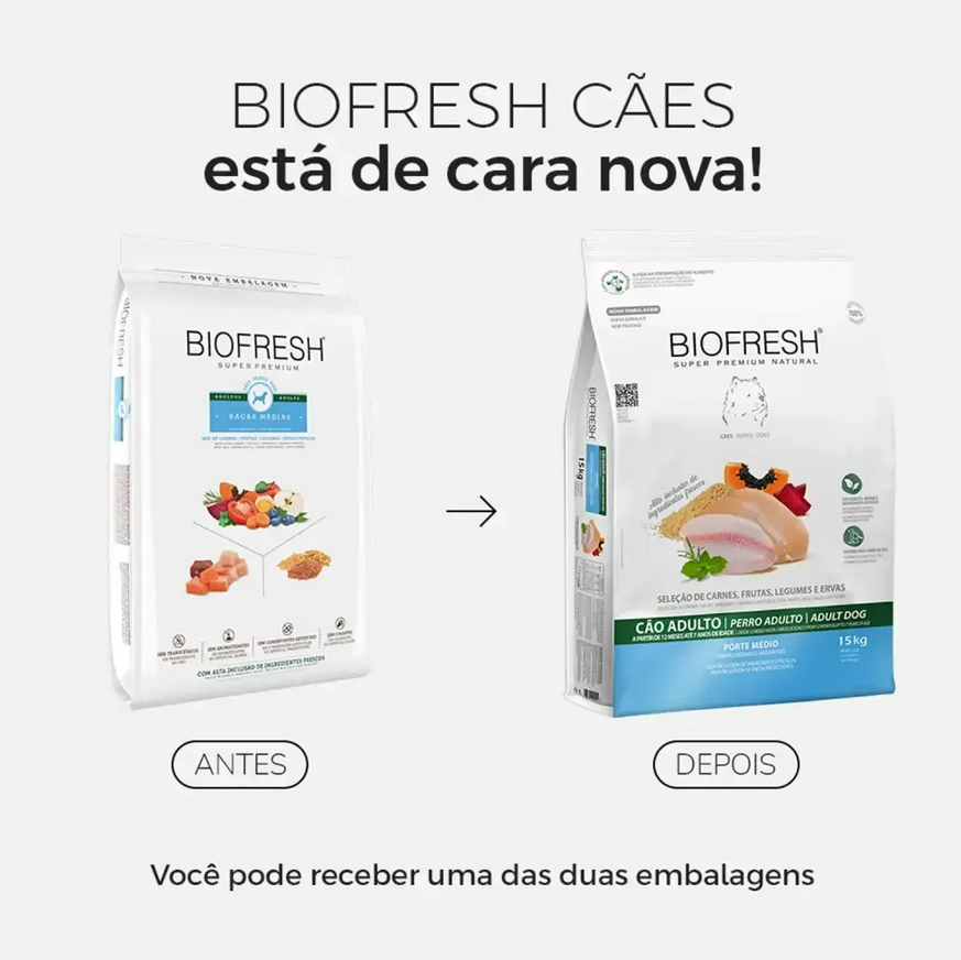 RAÇÃO BIOFRESH SUPER PREMIUM CÃES ADULTOS RAÇAS MÉDIAS 15KG