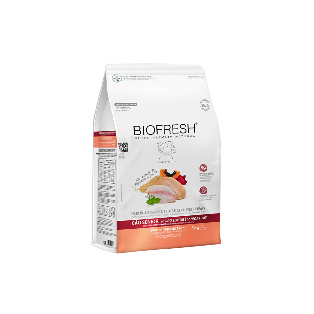 RAÇÃO BIOFRESH SUPER PREMIUM CÃES ADULTOS SÊNIOR RAÇAS PEQUENAS E MINIS 3KG