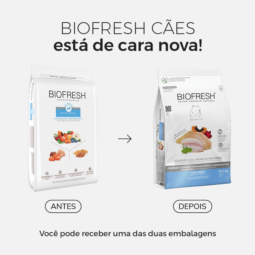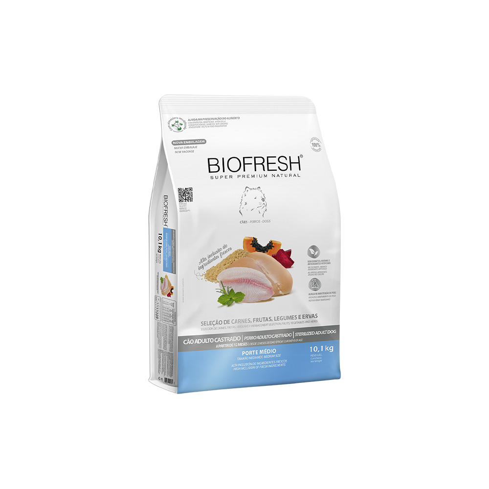 RAÇÃO BIOFRESH SUPER PREMIUM CÃES CASTRADOS RAÇAS MÉDIAS 10,1KG