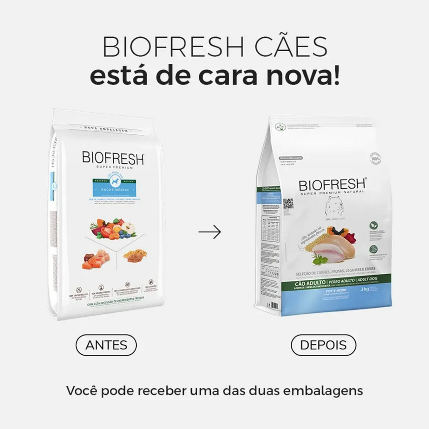 RAÇÃO BIOFRESH SUPER PREMIUM CÃO ADULTO RAÇAS MÉDIAS MIX DE CARNES 3KG