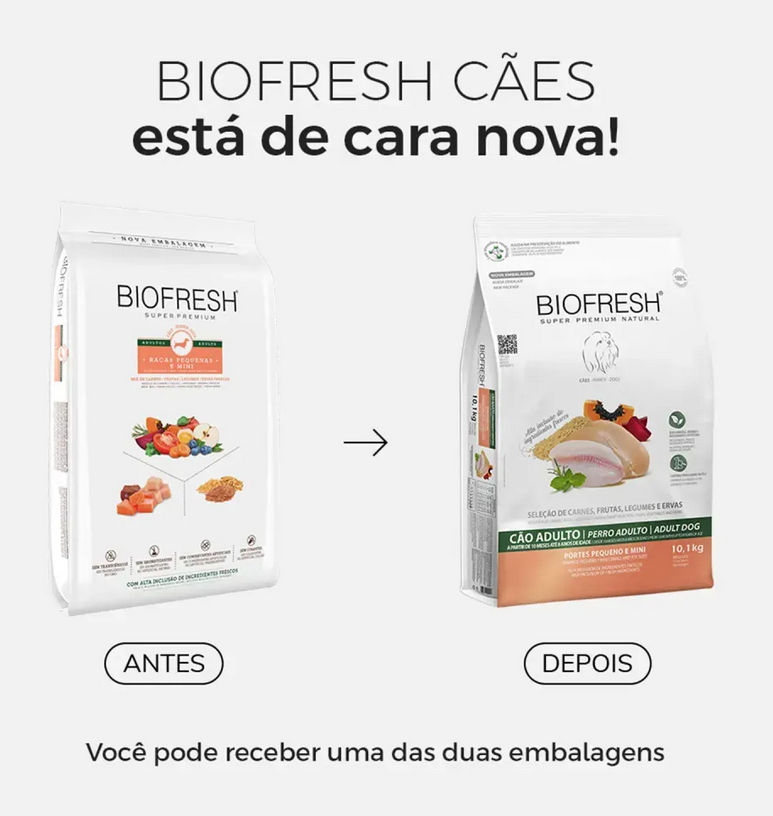 RAÇÃO BIOFRESH SUPER PREMIUM CÃO ADULTO RAÇAS PEQUENAS E MINIS SABOR FRANGO 10,1KG