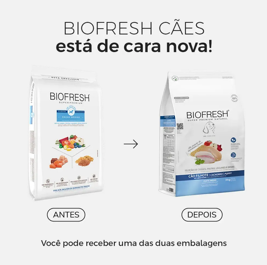 RAÇÃO BIOFRESH SUPER PREMIUM CÃO FILHOTE RAÇAS MÉDIAS MIX DE CARNES 3KG