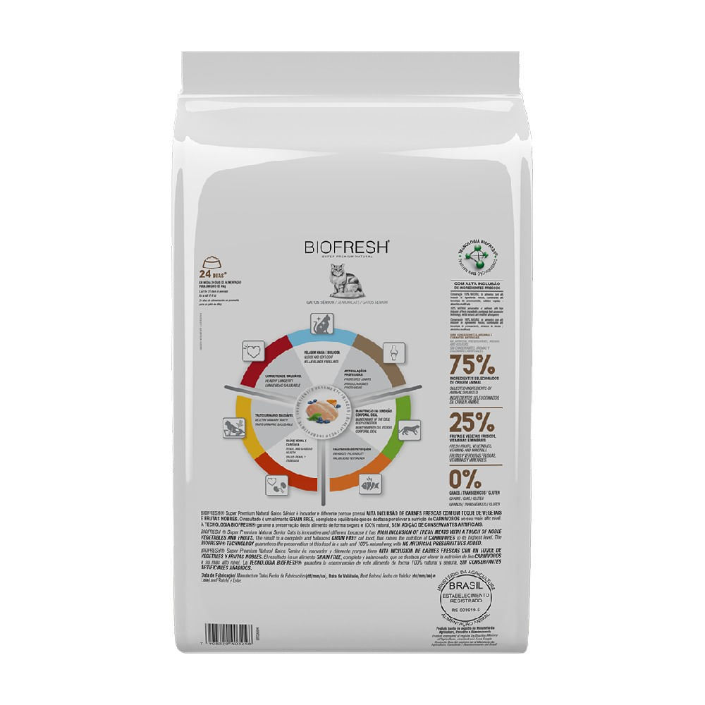 RAÇÃO BIOFRESH SUPER PREMIUM GATO SÊNIOR SABOR FRANGO 1,5KG