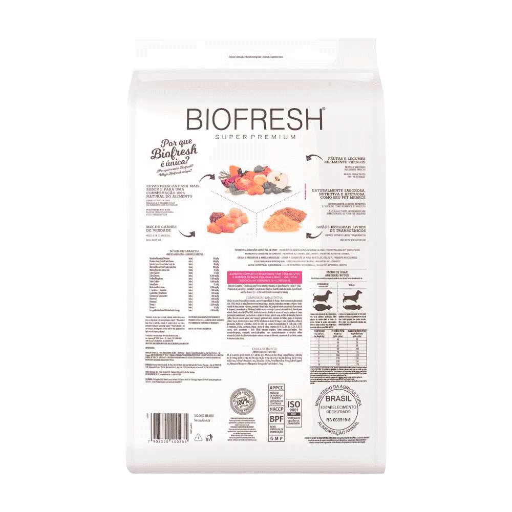 RAÇÃO BIOFRESH SUPER PREMIUM LIGHT CÃES ADULTOS RAÇAS PEQUENAS E MINIS 10,1KG
