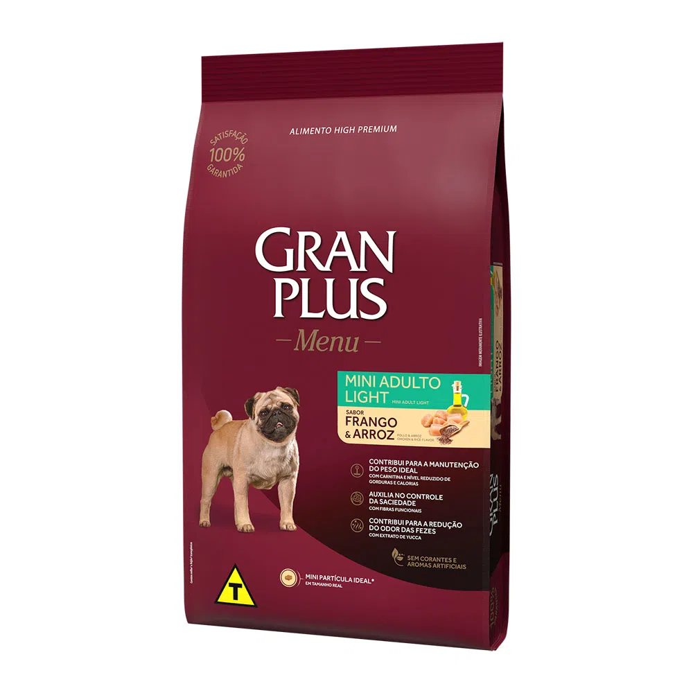 RAÇÃO GRANPLUS MENU CÃO ADULTO LIGHT MINI FRANGO E ARROZ 10,1KG