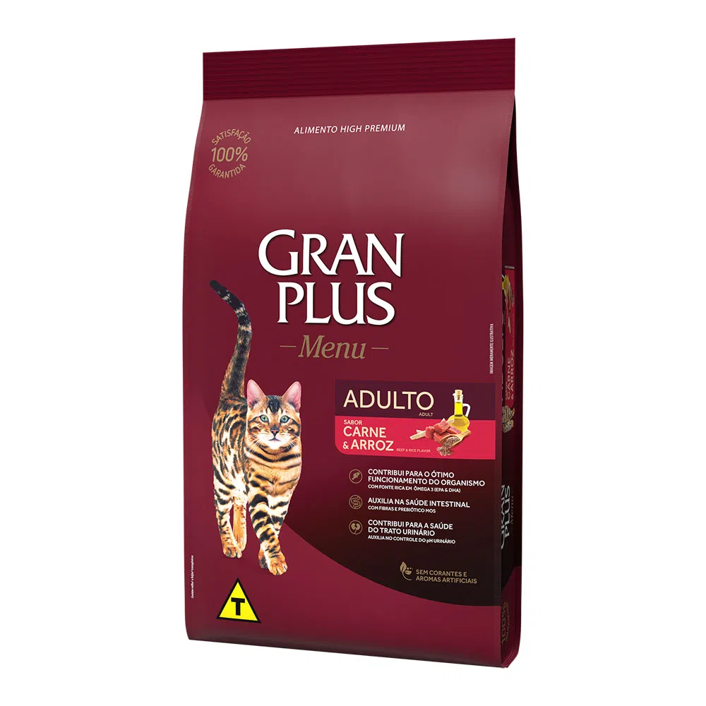 RAÇÃO GRANPLUS MENU GATO ADULTO CARNE E ARROZ 10,1KG