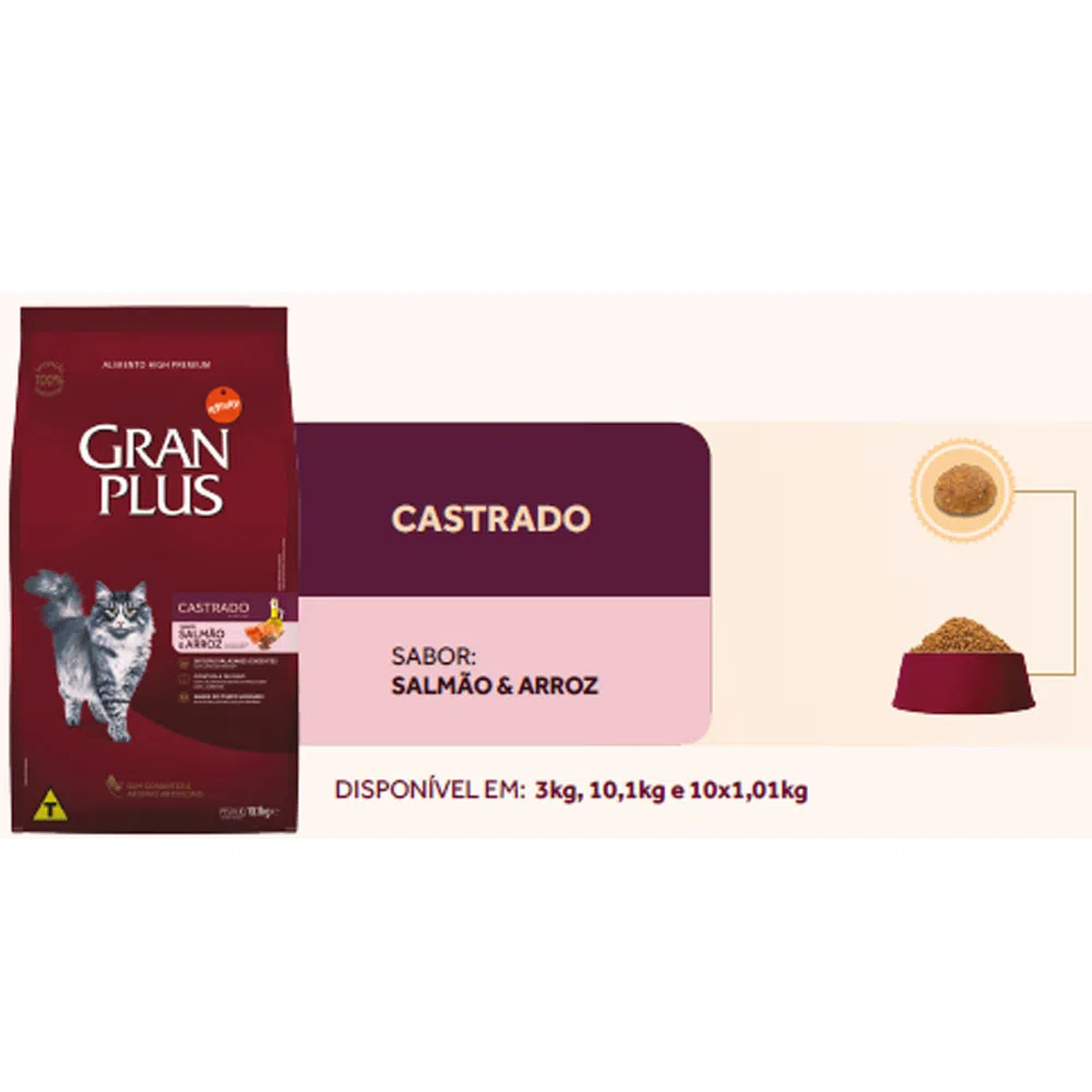 RAÇÃO GRANPLUS MENU GATO CASTRADO SALMÃO E ARROZ 10,1KG