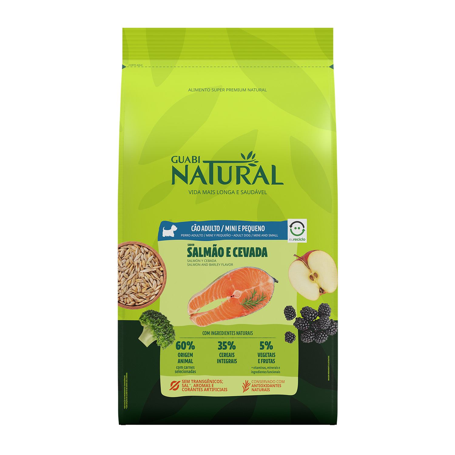 RAÇÃO GUABI NATURAL CÃO ADULTO MINI E PEQUENO SALMÃO E CEVADA 10,1KG