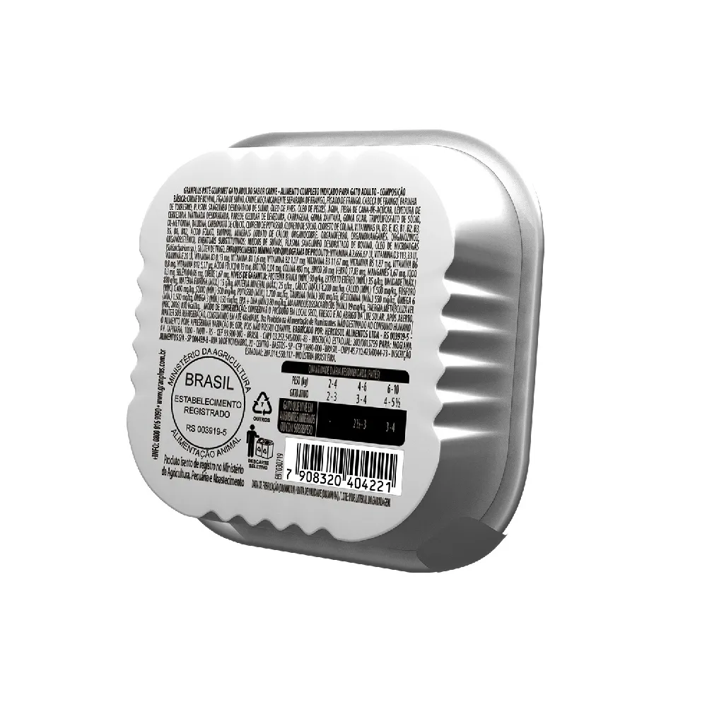 RAÇÃO ÚMIDA PATÊ GRANPLUS GOURMET GATO ADULTO CARNE 100G