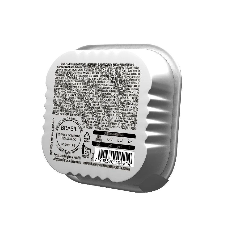 RAÇÃO ÚMIDA PATÊ GRANPLUS GOURMET GATO FILHOTE FRANGO 100G