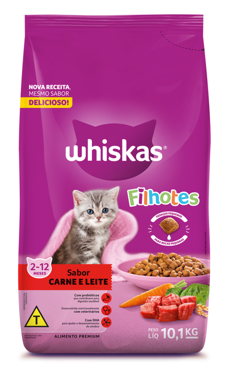 RAÇÃO WHISKAS CARNE E LEITE GATOS FILHOTES 10,1KG